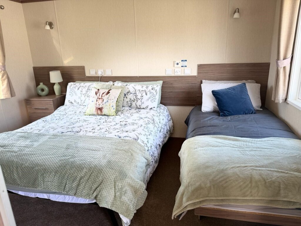 The caravan sleeps up to six guests, with: