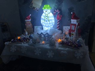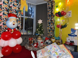 She explained: “Frazer loves anything about Christmas, and particularly the lights and music, so we decided to turn our house into a Christmas grotto. The Trust have provided us with illuminated models of the Snowman and Snowdog in the lounge, curtains made out of fairy lights, snowballs, a Christmas balloon arch, decorations which play music – the works.